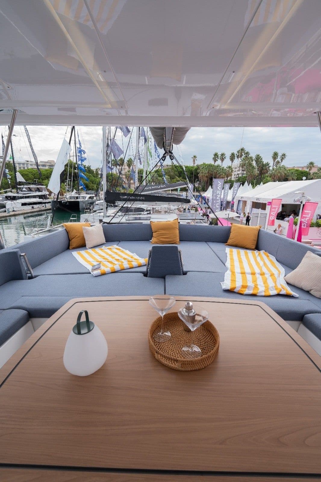 Au cœur de son design se trouve la fameuse conception "open-space". La porte arrière oscillo-basculante relie harmonieusement le salon et le cockpit, transformant tout le pont principal en un vaste espace convivial. Aucun autre catamaran ne rivalise avec cette sensation d’ouverture ! Que ce soit pour recevoir des invités ou admirer un coucher de soleil, le sentiment d’espace et de communion avec la mer est unique.